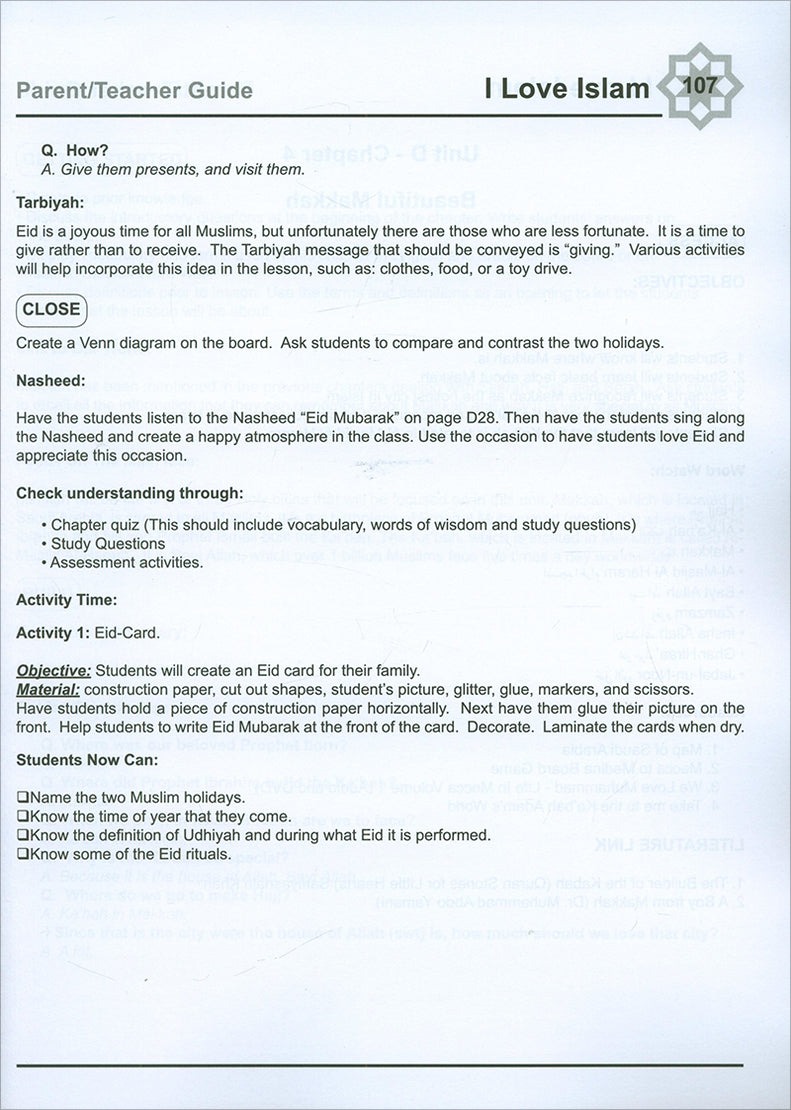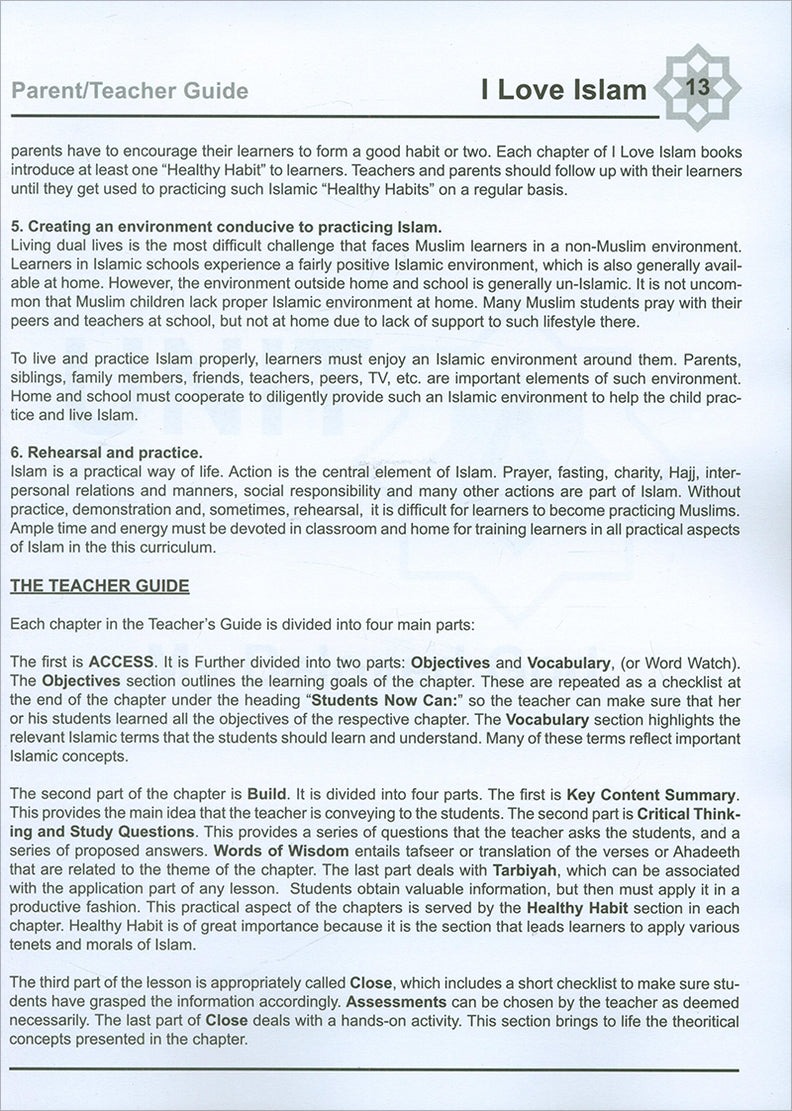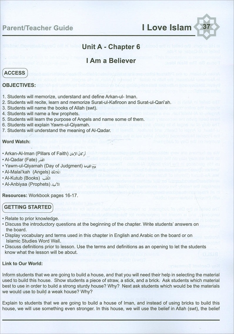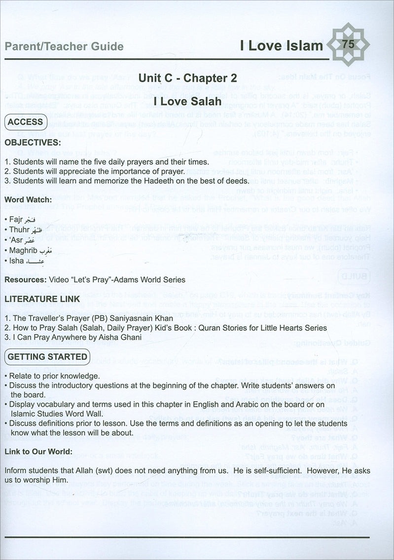 I Love Islam is a series of Islamic studies textbooks and workbooks that gradually introduces the Muslim student to the essentials of his faith, and bring to light the historic and cultural aspects of Islam. The series cover grades one through five, and include a student textbook and workbook as well as a teacher’s edition.