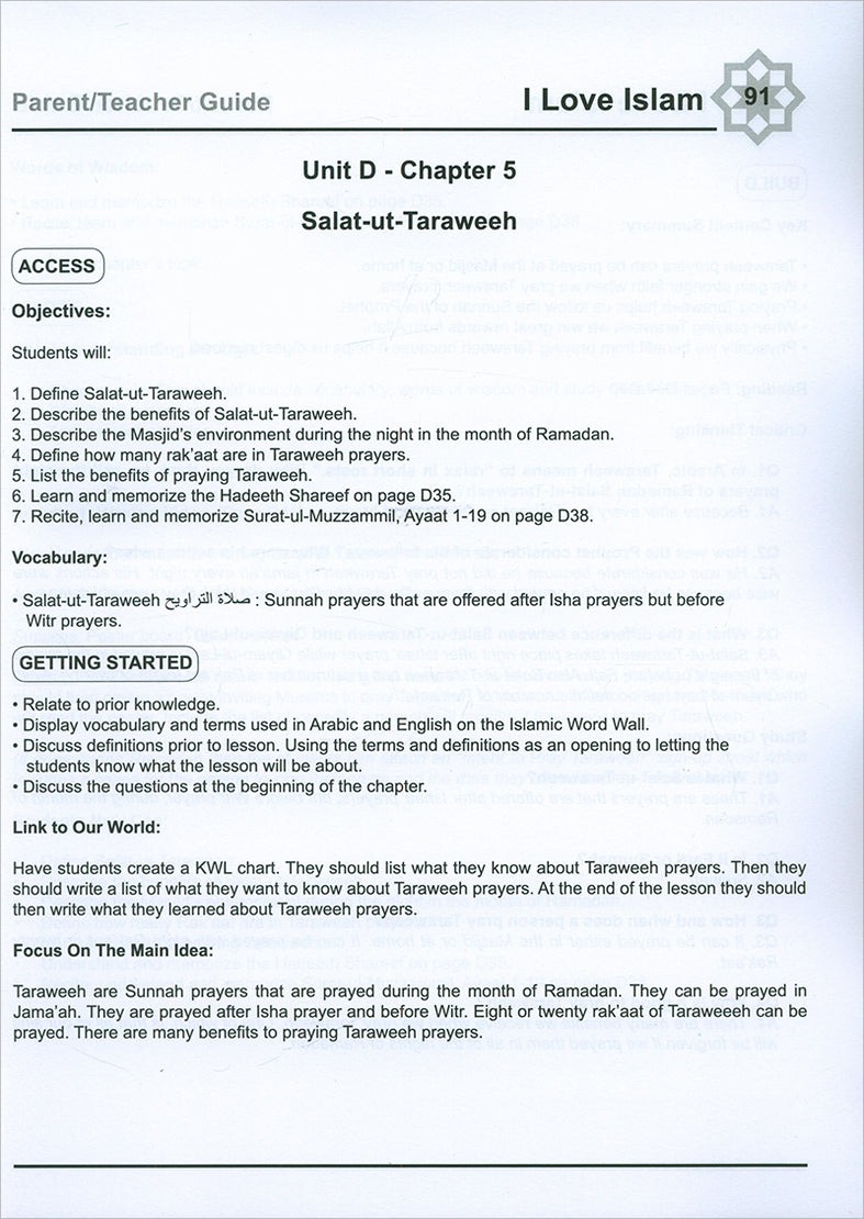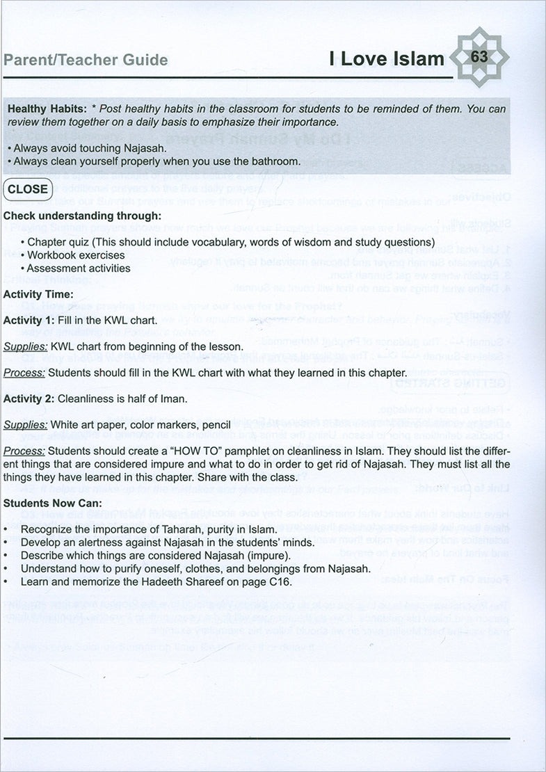 I Love Islam is a series of Islamic studies textbooks and workbooks that gradually introduces the Muslim student to the essentials of his faith, and bring to light the historic and cultural aspects of Islam. The series cover grades one through five and include a student textbook and workbook as well as a teacher’s edition.