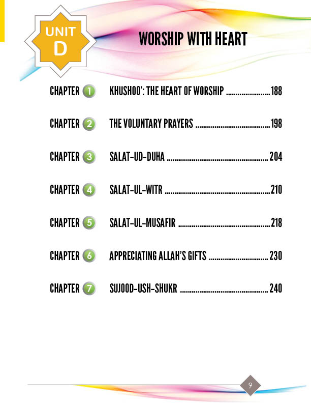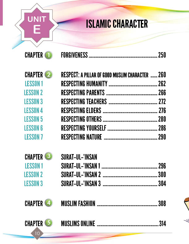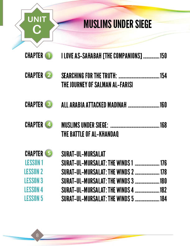 المستوى الخامس في سلسلة “أنا أحب الإسلام” يضع أسس نظام العقيدة الإسلامية للمتعلمين الصغار بطريقة ملونة ومناسبة لأعمارهم. يتم شرح المفهوم الأساسي للتوحيد بلغة بسيطة، مستندة إلى القرآن وتعاليم النبي (صلى الله عليه وسلم). كما يتم تغطية السيرة، والعبادة، والآداب والأخلاق الإسلامية. يتم تقديم شخصيات ممتعة للطلاب تلهمهم لتعلم دروس حياتية مهمة. مع هذه السلسلة، يمكن للطلاب الاستمتاع بالموضوع وتعلم دروس تستمر معهم مدى الحياة.