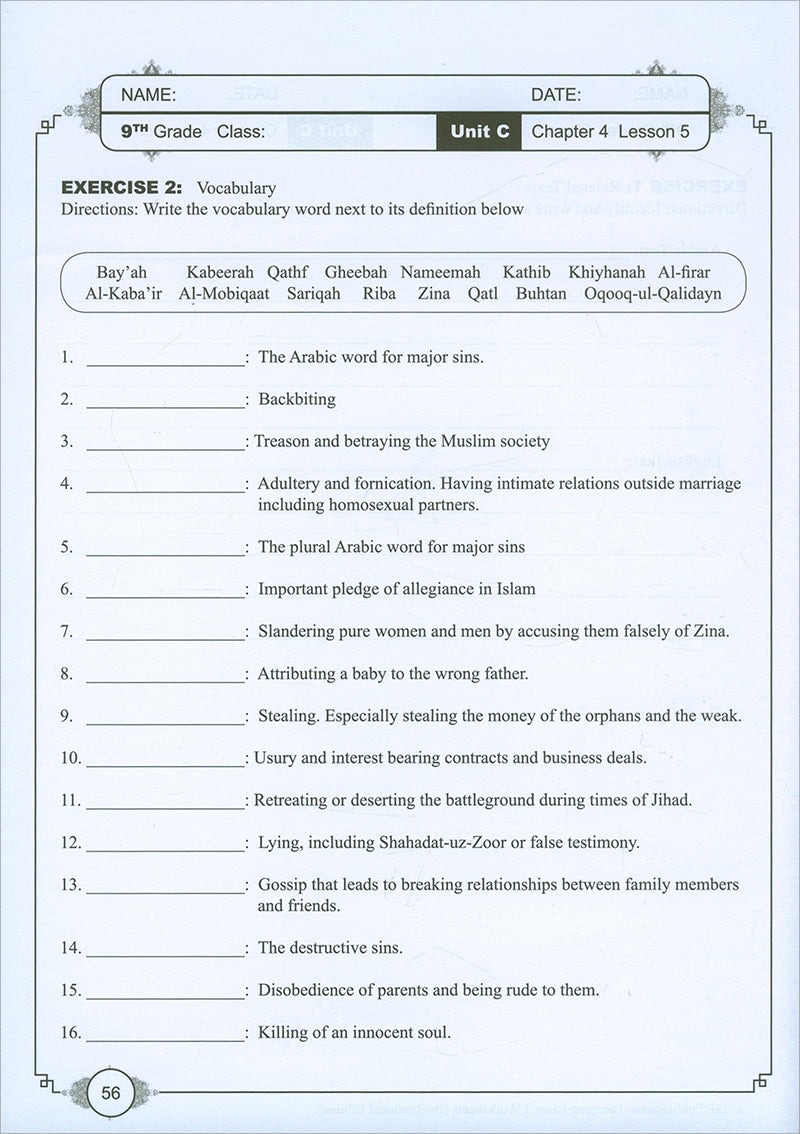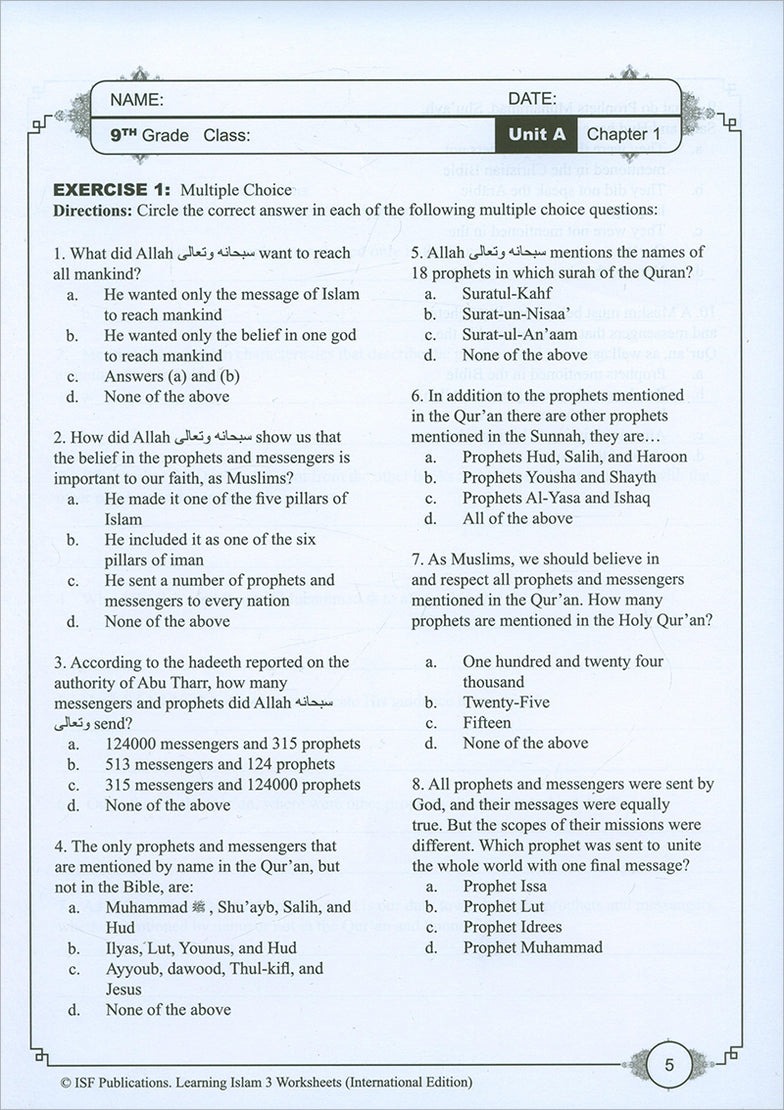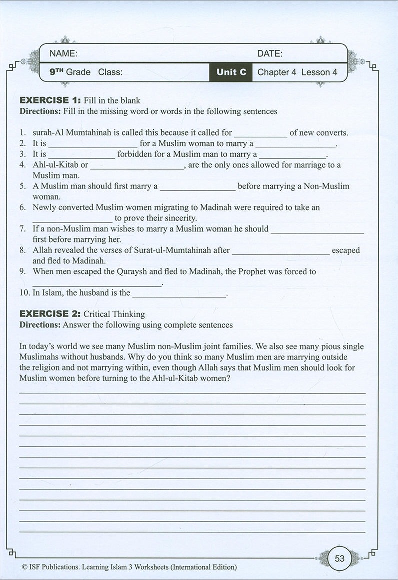 Learning Islam Workbook: Level 3 (9th Grade, Weekend/International Edition)