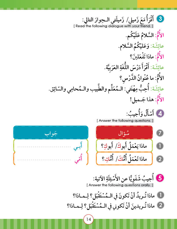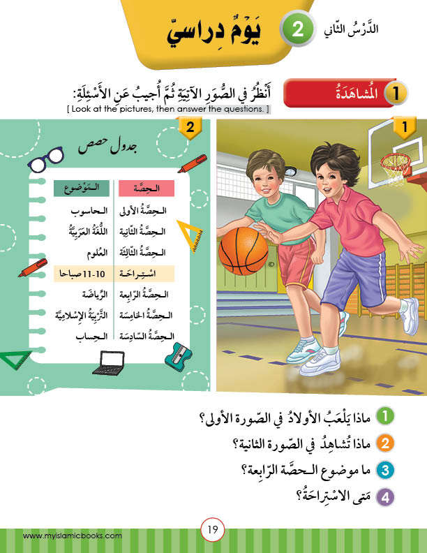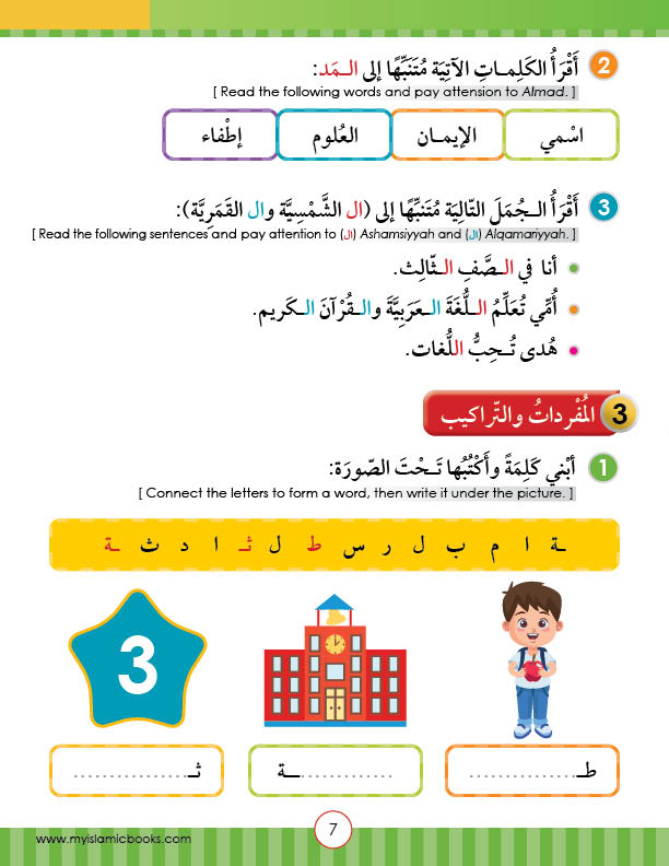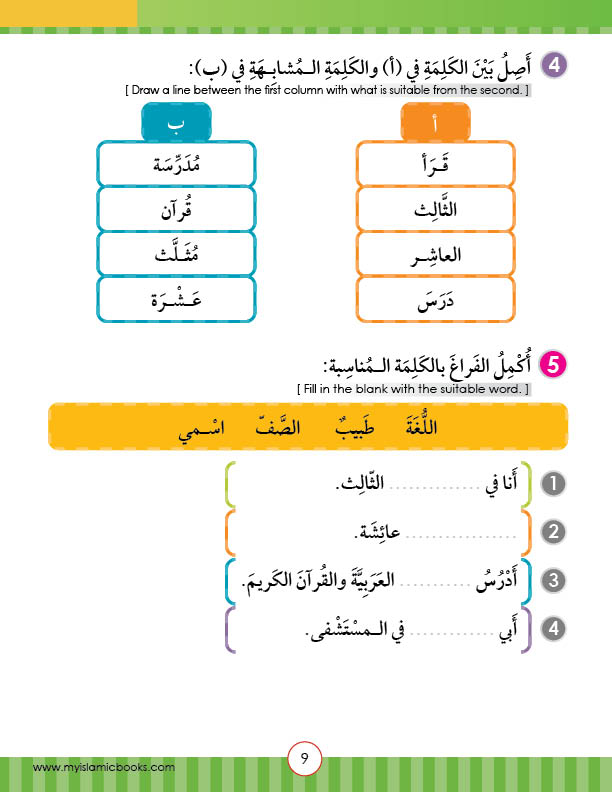 This series, with its inclusive exercises and additional elements, serves as a strong foundation for learners wishing to advance in their Arabic learning journey. It focuses on thematic diversification, allowing learners to build a diverse vocabulary in various knowledge fields, including mathematics, sciences, Islamic education, Quran, environment, and various arts.