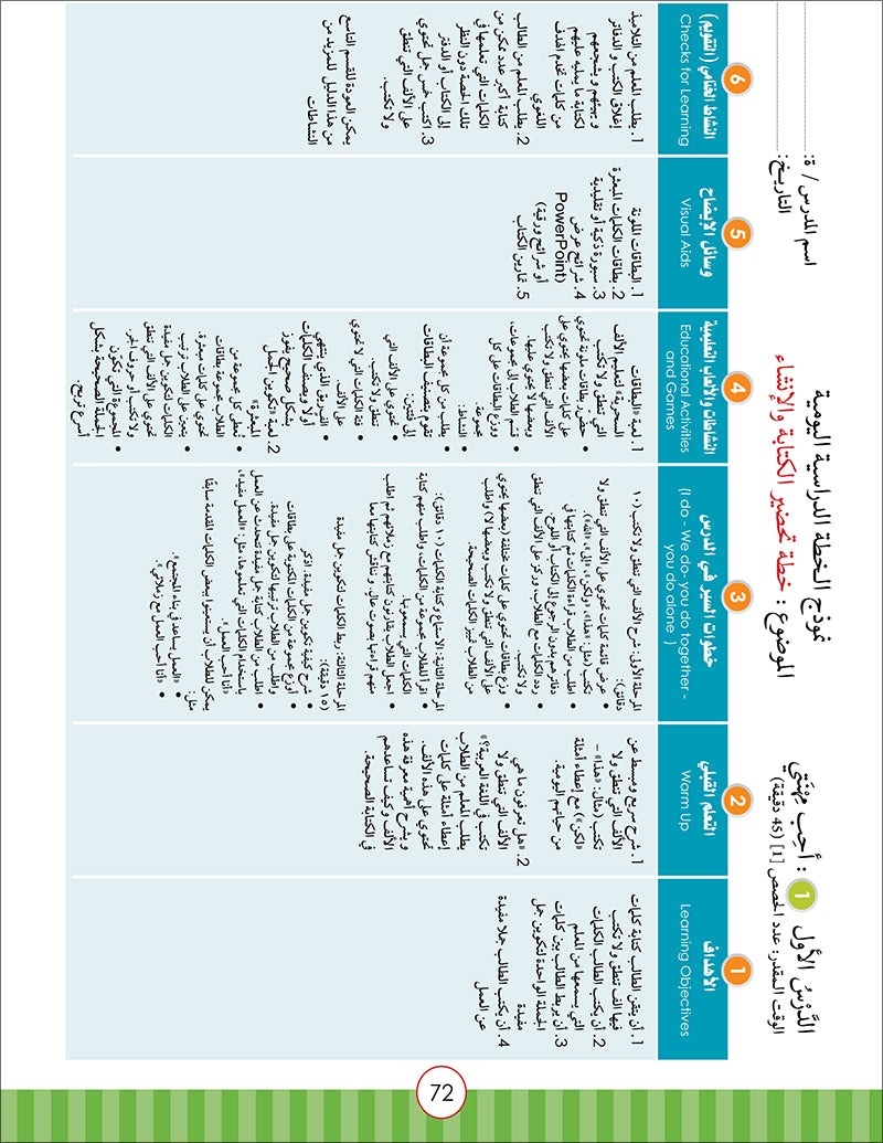 The Teacher Guide presents the instructor with lesson objectives and provides suggested ways on how to teach the material included in each lesson. This guide breaks down the lesson into parts while mapping the specific concepts the student is supposed to be taught in each lesson. A concise introduction informs the instructor of the main principles of Arabic languages instruction both in terms of objectives, methods and activities.