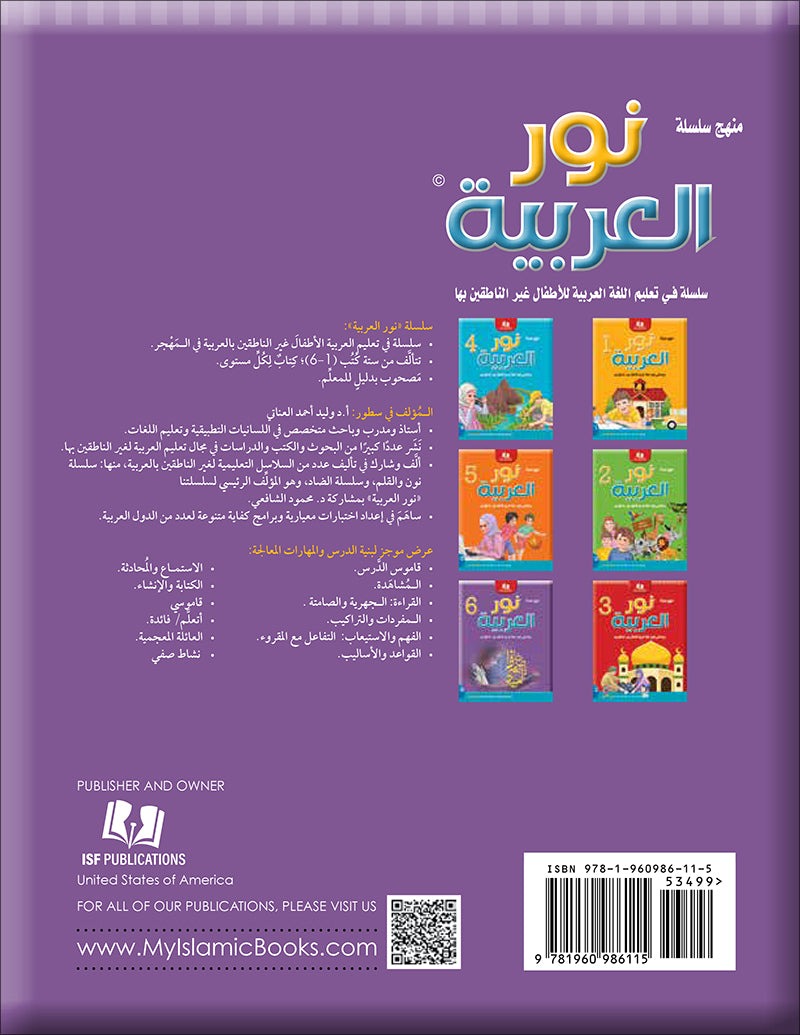 يمثل دليل المعلم للمستوى السادس من سلسلة نور العربية مرجعًا متقدمًا لمعلمي اللغة العربية للأطفال غير الناطقين بها في المرحلة العليا من التعليم الابتدائي. يرافق هذا الدليل كتاب الطالب، ويقدّم رؤية تعليمية متكاملة مدعومة بأهداف واضحة، وأنشطة محفزة، وأساليب تدريس تواكب أحدث النظريات في تعليم اللغات.