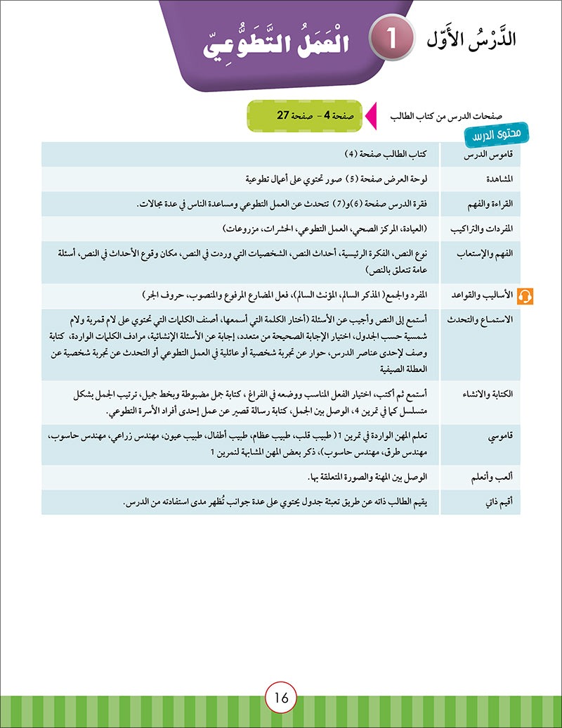 أهداف معرفية وسلوكية دقيقة لكل درس تتناول موضوعات واقعية مثل العمل التطوعي، البيئة، الذكاء الاصطناعي، والثقافات.
